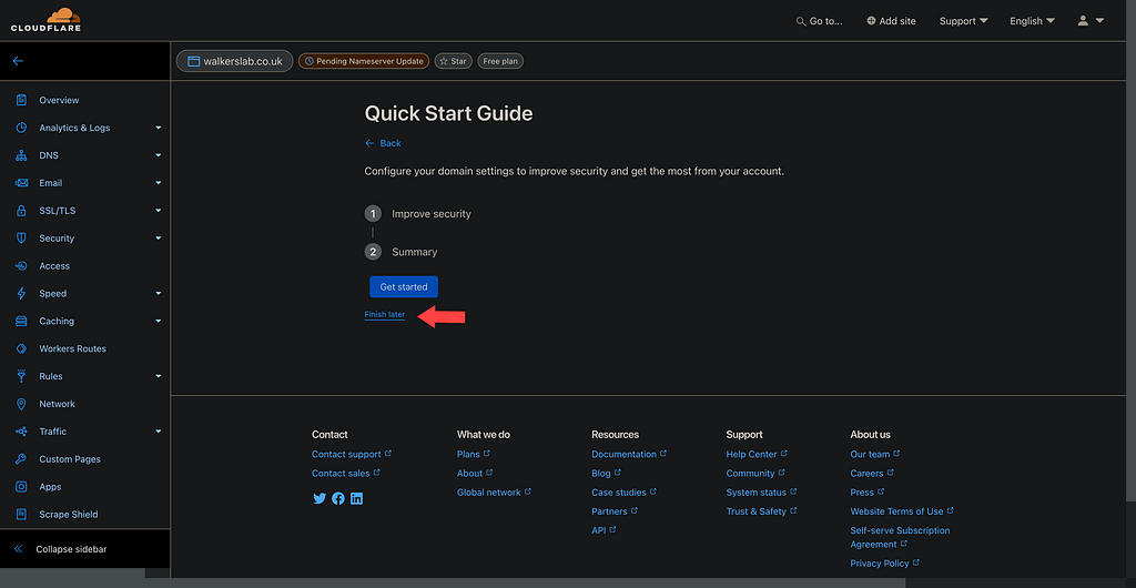 This will run a check on your domain to confirm that the nameservers for the domain are pointing to Cloudflare. The check can take up to 24 hours to complete but it usually takes 5 minutes.