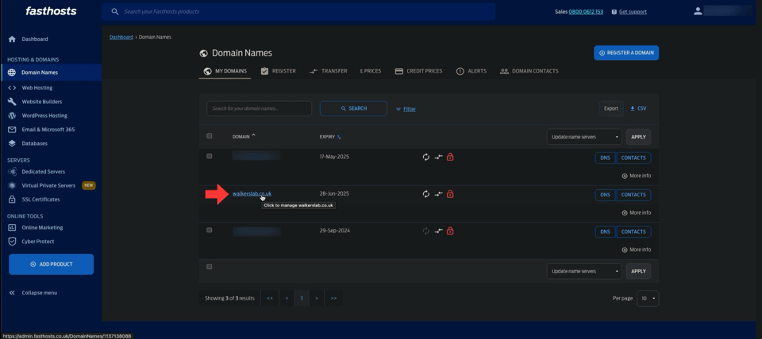 The first step is to login into your FastHosts account. Once logged in, you’ll be taken to the Dashboard.