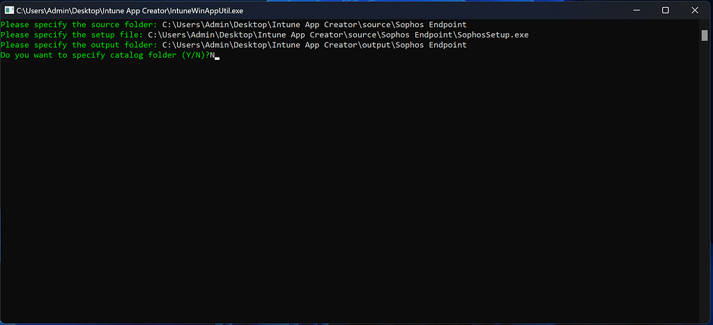 In my example it was saved to C:\Users\Admin\Desktop\Intune App Creator\source\Sophos Endpoint