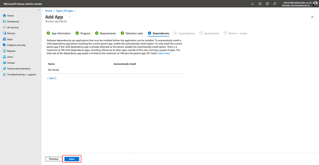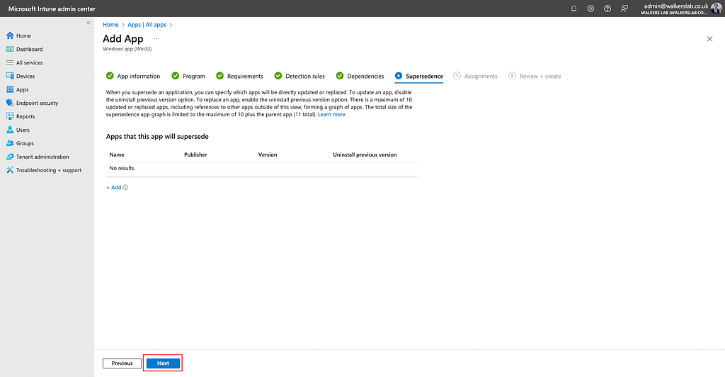 Click “Next” on the Supersedence section.